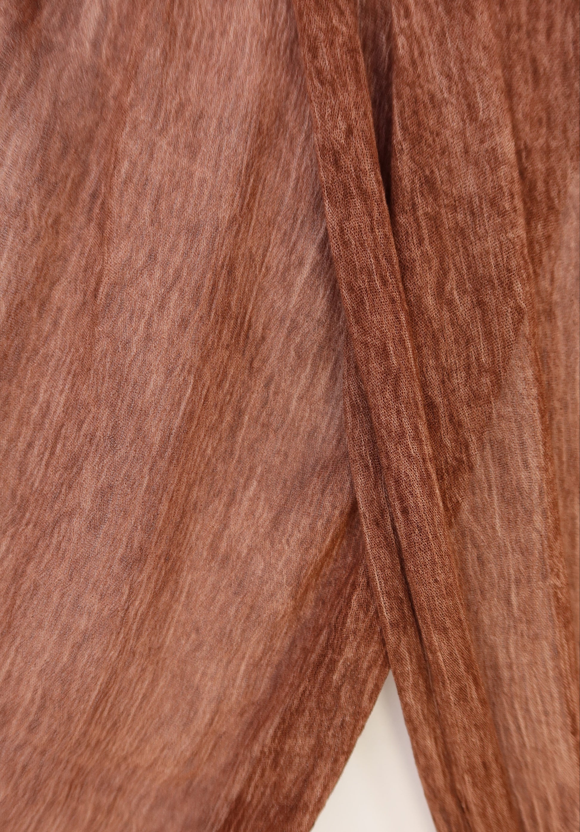 Our Premium Modal Wave Hijab is crafted from a modal–rayon blend for a silky drape and subtle wave-like crinkle texture. Finished with a single-stitch edge for a clean, minimal look - perfect for everyday wear or elevated occasions. Each batch is hand-dyed, so slight variations in colour may occur, though we always strive to keep shades as consistent as possible.