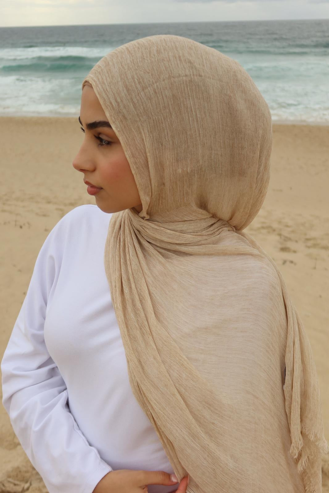 Our Premium Modal Wave Hijab is crafted from a modal–rayon blend for a silky drape and subtle wave-like crinkle texture. Finished with a single-stitch edge for a clean, minimal look - perfect for everyday wear or elevated occasions. Each batch is hand-dyed, so slight variations in colour may occur, though we always strive to keep shades as consistent as possible.